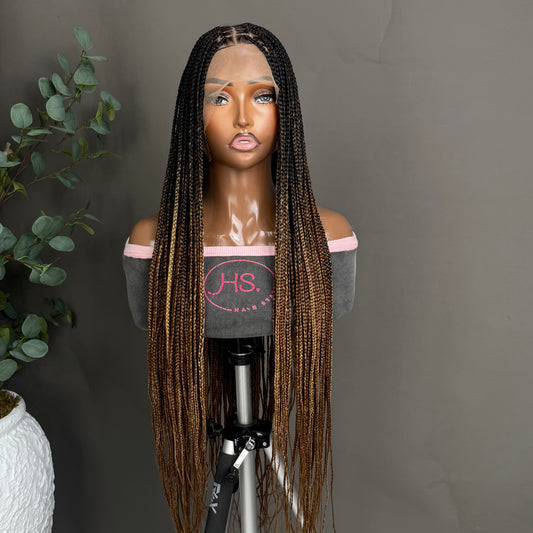 Knotless Braided Wig - HD Transparent Full Lace Braided Wig With Baby Hairs (Ombre Mix)