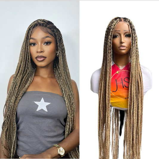 Knotless Braided Wig - HD Transparent Full Lace Braided Wig With Baby Hairs (Blonde Mix - 27,30,613)