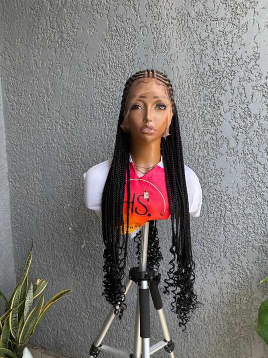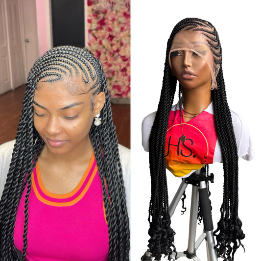 Fulani Cornrow with Boho Curls - HD Transparent Full Lace Braided Wig With Baby Hairs - Freestyle Cornrow Hairstyle
